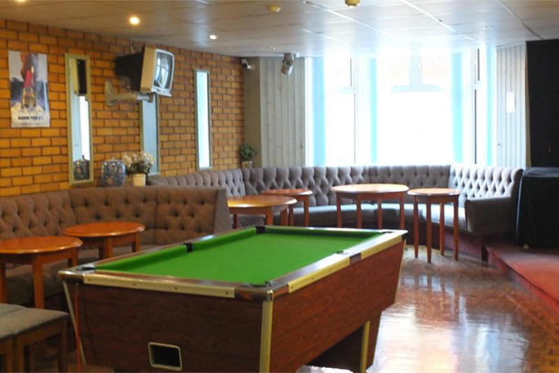 Enjoy your drinks at our bars, also play pool and slot machines.